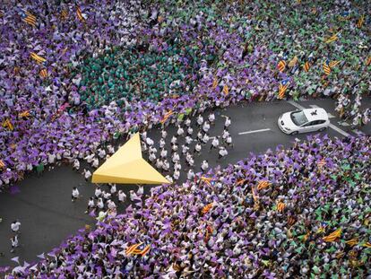 El recuento de manifestantes suele ser impreciso y partidista, pero nunca fue tan complicado como en esta Diada, deslocalizada en cinco escenarios, dar un dato científico de asistencia