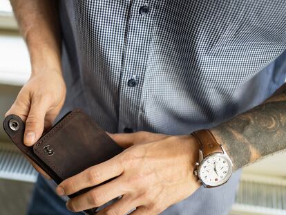Este monedero para hombre está fabricado con cuero de alta calidad, ocupa muy poco espacio en el bolsillo y te permite mantener las monedas juntas y a mano