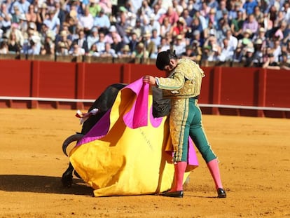 El diestro que abrió la Puerta del Príncipe tras cortar un total de cuatro orejas, y la ganadería de Garcigrande, cuyo quinto toro fue indultado por clamorosa petición popular, se adueñaron de la feria de Sevilla con un compartido y resonante triunfo