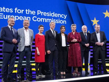 Los representantes de las seis principales familias políticas europeas confrontan sus respectivos programas durante un acto celebrado en el Parlamento Europeo en Bruselas