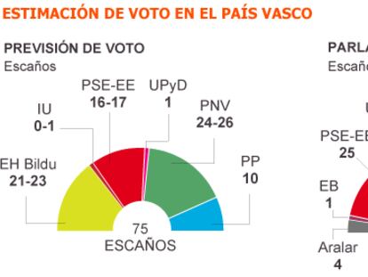 El PSE baja 8 o 9 escaños y el PP, 3, según el sociómetro del Gobierno vasco