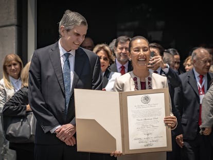 La candidata oficialista recibe la constancia que oficializa su triunfo en la jornada electoral del 2 de junio. “México ha roto el techo de cristal”, declaró la presidenta del Tribunal Electoral, Mónica Soto