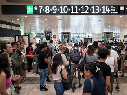 Pasajeros que vieron suspendidos sus trenes ayer entre Madrid y Barcelona pasan la noche en la estación de Sants o en hoteles cercanos