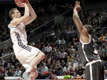 Los 27 puntos del escolta sellan la victoria (76-46) de los de Vidorreta sobre el Cajasol de Aíto, nuevo colista El Madrid apabulla al Fuenlabrada (100-79) y llega a la centena por segunda vez en tres jornadas Huertas y Tomic llevan al Barcelona a su primer triunfo del curso