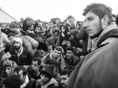 Cinco fotorreporteros que llevan meses siguiendo el viaje de miles de exiliados muestran su obra en Madrid en una exposición organizada por el Instituto Francés en la Feria del Libro