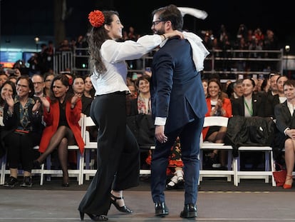 El regidor de Vita, Antonio Martín Hernández, animaba al público a corear sus consignas subido a un escenario