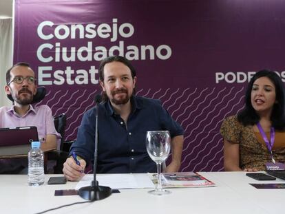 El líder de Podemos explica al consejo ciudadano estatal de su partido la negociación de los Presupuestos con el Gobierno