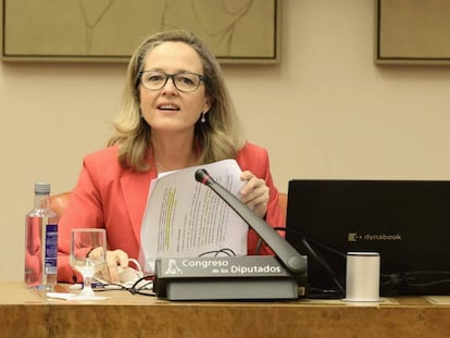 La Vicepresidenta y ministra de Economía conversa con Xavier Vidal-Folch en el Foro Fondos Europeos 2022 organizado por EL PAÍS