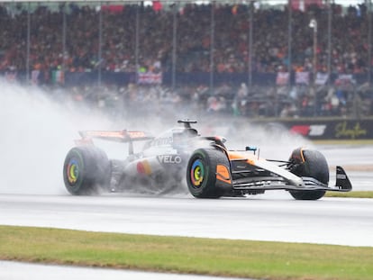 Lando Norris, Oscar Piastri y Nico Hülkenberg se suben al podio en Silverstone | La carrera ha estado marcada por la lluvia | Verstappen terminó quinto tras un trompo que le hizo caer al undécimo lugar