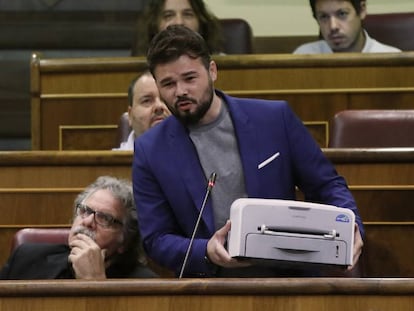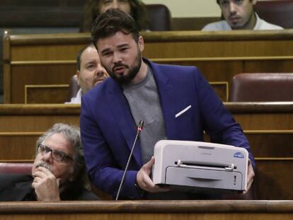 El diputado de ERC esgrime los grilletes: "Ustedes nos han molido a palos, nosotros les moleremos a votos", advierte al Gobierno antes de abandonar el hemiciclo