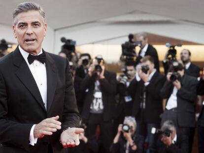 El actor y su novia la abogada, Amal Alamuddin, llegan a Venecia donde el sábado contraen matrimonio La pareja ha vendido la exclusiva a 'Vogue' y el dinero se destinará a las víctimas de Darfur Los festejos comienzan esta noche