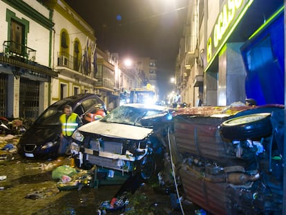 Las fuertes lluvias han arrastrado coches y provocado el derrumbe de al menos una casa en el municipio hispalense