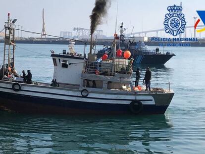 Agentes de la Policía Nacional y de Vigilancia Aduanera abordan un pesquero cargado de droga y detienen a 13 tripulantes marroquíes