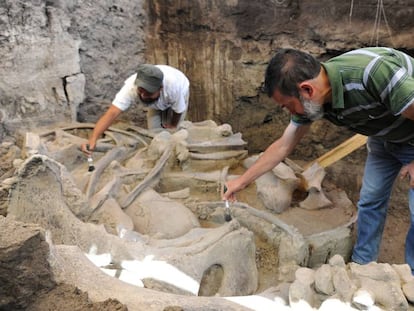 Una obra de drenaje saca a la luz un mamut probablemente devorado por hombres primitivos