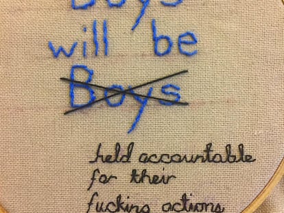 La obra de una artesana que aboga por «responsabilizar a los hombres de sus acciones» circula a la velocidad de la luz en redes sociales. ‘Celebrities’, publicaciones y usuarios anónimos la comparten para plantarle cara a los abusadores sexuales.
