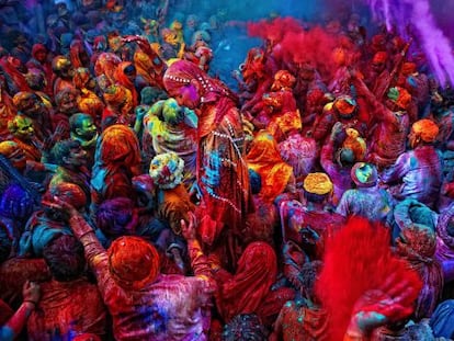 Millones de indios se echan a las calles del país para celebrar la tradicional fiesta hindú de Holi, una intensa lucha de agua y polvos de colores que precede al inicio de la primavera