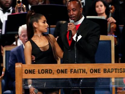 El obispo del funeral de Aretha Franklin se disculpa por manosear a Ariana Grande