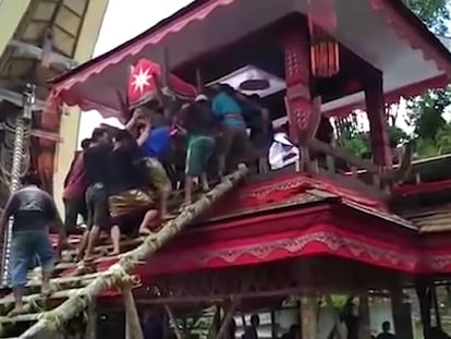 La escalera de bambú por donde transportaban el féretro cedió por el peso en Sulawesi, Indonesia