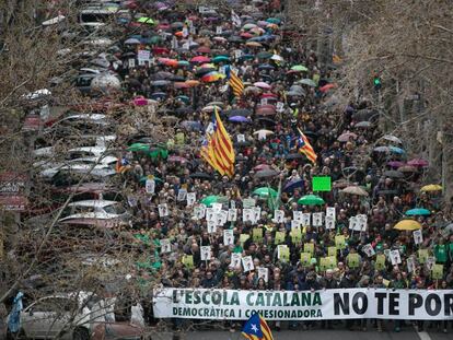 Los manifestantes rechazan la intención del Gobierno español de aumentar las horas de clase en lengua castellana