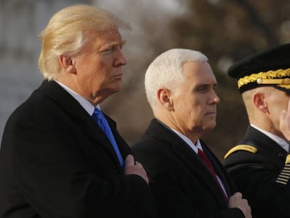 El que será en menos de 24 horas presidente de EE UU realiza una ofrenda floral en la tumba del soldado desconocido y asiste a un acto en el Monumento a Lincoln
