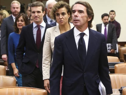 Casado acude a recibirle al Congreso: "Esta comisión es un despropósito. Estoy muy orgulloso de Aznar"