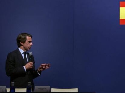 El expresidente escenifica la paz con la dirección y se presenta como autoridad moral del partido Cañete. "Presidente Aznar, hemos vuelto a donde nos dejaste"