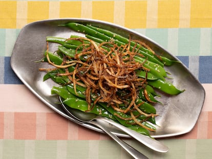 Volvemos de nuevo a un plato tradicional para darle un lavado de cara. Una cocción relámpago de las vainas y un refrito de pimentón convierten esta comida de diario en un festival.