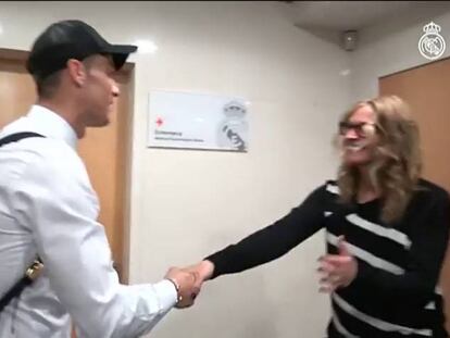 La actriz y su familia ocupan un palco del Bernabéu y bajan a los vestuarios a conocer a Cristiano Ronaldo y otros futbolistas del equipo