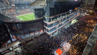 Miles de aficionados del Valencia protestan contra el presidente antes de la derrota contra el Athletic, que deja al equipo en puestos de descenso