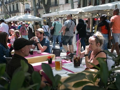 La céntrica Rambla de Santa Mónica se puebla de paradas de restaurantes, bares y pastelerías