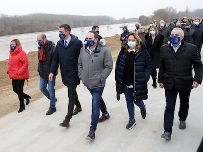 Pedro Sánchez evalúa los daños de la crecida del río Ebro en Aragón, Navarra y La Rioja