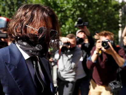 El actor coincide por primera vez en público con su exesposa Amber Heard en un juzgado de Londres, donde se dirime una demanda por difamación
