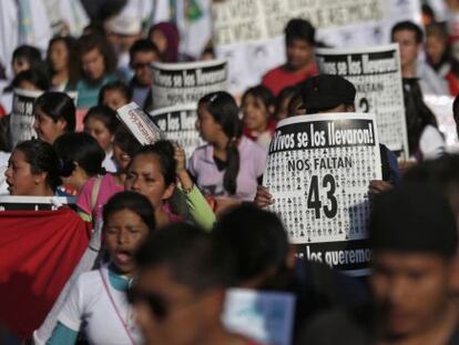 Los padres de los estudiantes desaparecidos encabezan una protesta en México para pedir que continúen las investigaciones