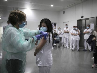 Con el pinchazo a Araceli, de 96 años, en la residencia Los Olmos, en Guadalajara, y a una sanitaria del centro, Mónica Tapias, arranca la campaña de inmunización contra el coronavirus