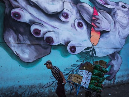 La central de abastos de la capital mexicana, un mercado de 327 hectáreas, alberga una galería de murales urbanos que se ha vuelto una escenografía surrealista en la vida diaria de este lugar.