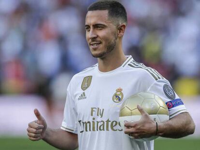 Más de 50.000 aficionados reciben al belga en su presentación con el Real Madrid. El belga se muestra humilde ante el reto de encabezar el nuevo proyecto de su ídolo Zidane
