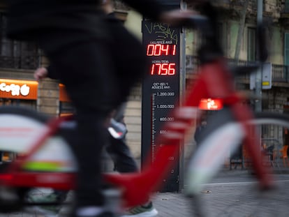 El tótem del cruce de Passeig Sant Joan y Gran Vía cumple 14 años en su silenciosa labor de detallar el tráfico a dos ruedas y promover la movilidad sostenible