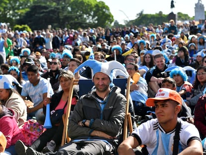 Decenas de hinchas de la selección blanquiazul se reúnen para seguir el México-Argentina en un restaurante de su tierra en La Condesa, en el centro de la capital mexicana