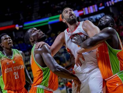 España supera con suficiencia a Costa de Marfil (79-62) en un duelo distendido que mezcló fogonazos de espectáculo y anarquía. Ricky, los hermanos Hernangómez y Oriola, los más destacados