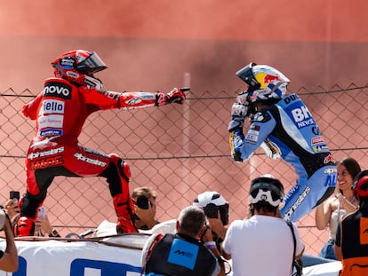 El piloto del equipo Gresini celebra la confirmación de su mejor temporada en MotoGP con una victoria aplastante este domingo