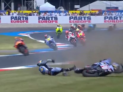 El piloto italiano de KTM se fue al suelo en la primera vuelta y estuvo a punto de ser arrollado por alguno de sus compañeros de parrilla