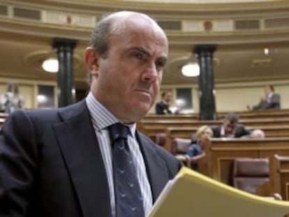 El ministro de Economía, Luis de Guindos, hace el anuncio en el Congreso Los diputados discuten la convalidación de la tercera reforma financiera