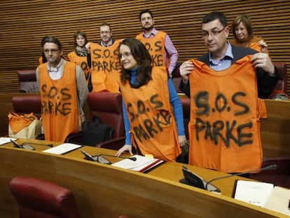 La oposición insta al PP a facilitar la situación real de las finanzas del Consell Compromís y Esquerra Unida exhiben su apoyo a un colectivo afectado por los recortes
