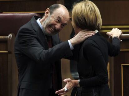 Rubalcaba no mencionó ayer la bronca andaluza tras la dimisión del secretario general de Sevilla