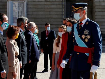 Sánchez y Díaz Ayuso se ven por primera vez tras el estado de alarma y los ministros de Podemos acuden a su primer 12 de octubre con los Reyes