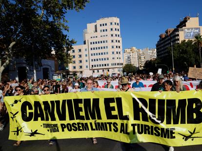 Más de 20.000 personas se suman en Palma a la primera gran manifestación en la comunidad para exigir límites al turismo. El centenar de entidades adheridas pide abandonar el monocultivo turístico