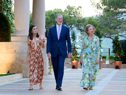 Los Reyes y sus hijas, acompañados de la reina Sofía, cenaron este domingo en la capital de Mallorca y se dejaron ver por primera vez juntos este verano. Este año no habrá su tradicional posado en la isla balear