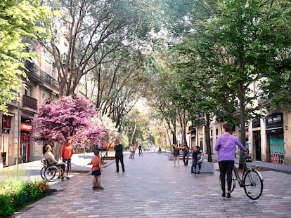 El gobierno de Jaume Collboni corrige y mejora los espacios públicos respecto a Consell de Cent: menos parterres, más árboles, y carga y descarga ordenada