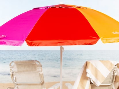 Así es la sombrilla de playa antiviento y con protección frente al sol