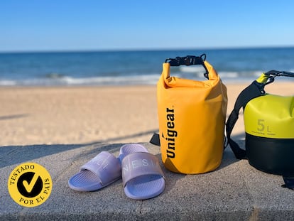 Tiene ocho compartimentos, con hueco para ropa húmeda y zapatillas, es impermeable y resistente a la arena
